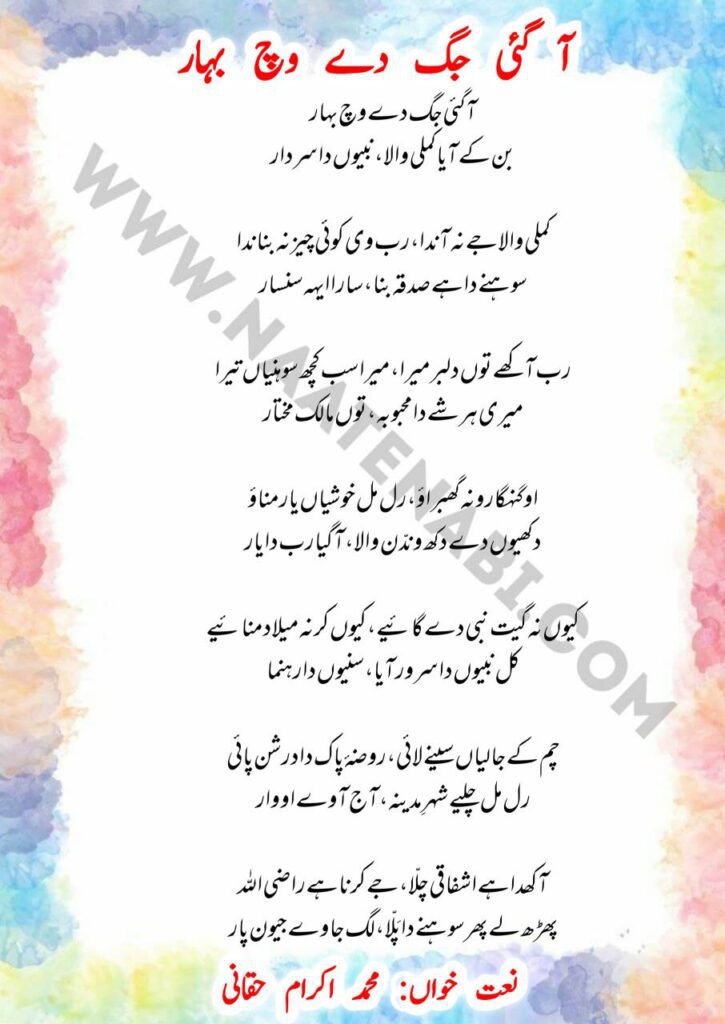 Aa Gayi Jag De Vich Bahaar-Punjabi Naat Lyrics in Roman English