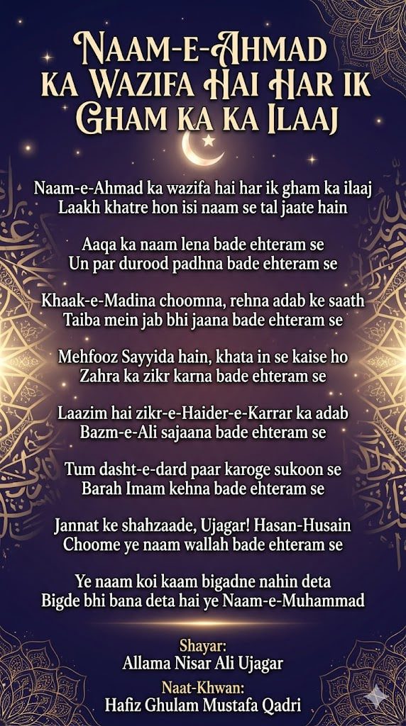 Naam-e-Ahmad ka wazifa hai har ik gham ka ilaaj