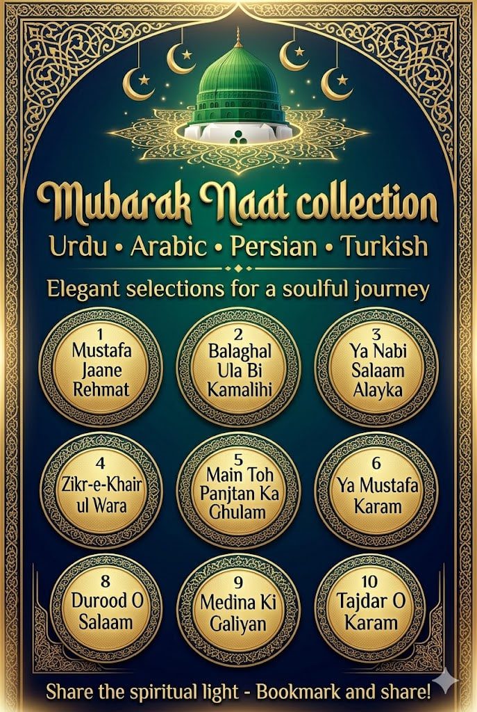 This Best Naat Lyrics Collection 2026 is regularly updated with new and beautiful naat lyrics in Roman English, Hindi & Urdu. Whether you are looking for emotional naats, Madina naats, or Punjabi kalam, this collection will help you find all in one place. Keep visiting for more latest naat lyrics and share with others ❤️