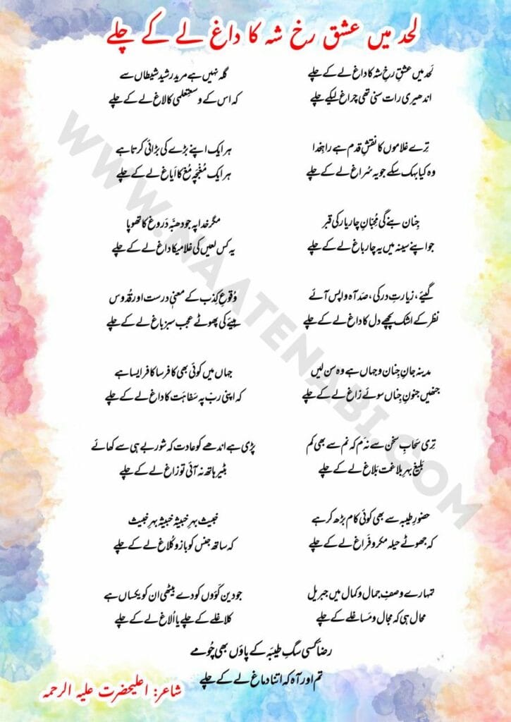 Lahad mein ishq-e-rukh-e-shah kaa daagh Naat Lyrics