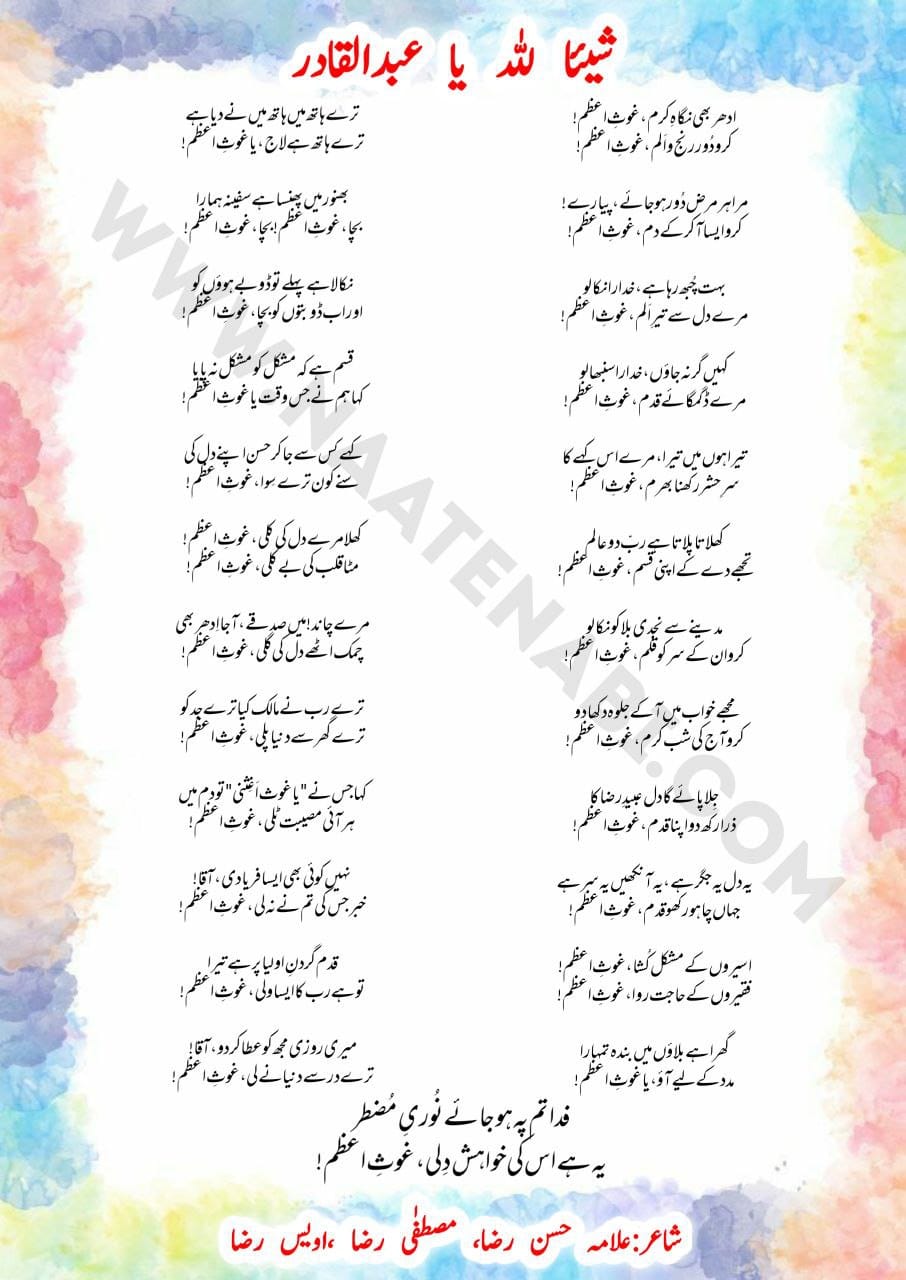 Teri zaat par buzurgi hai tamaam, Ghaus-e-Azam!