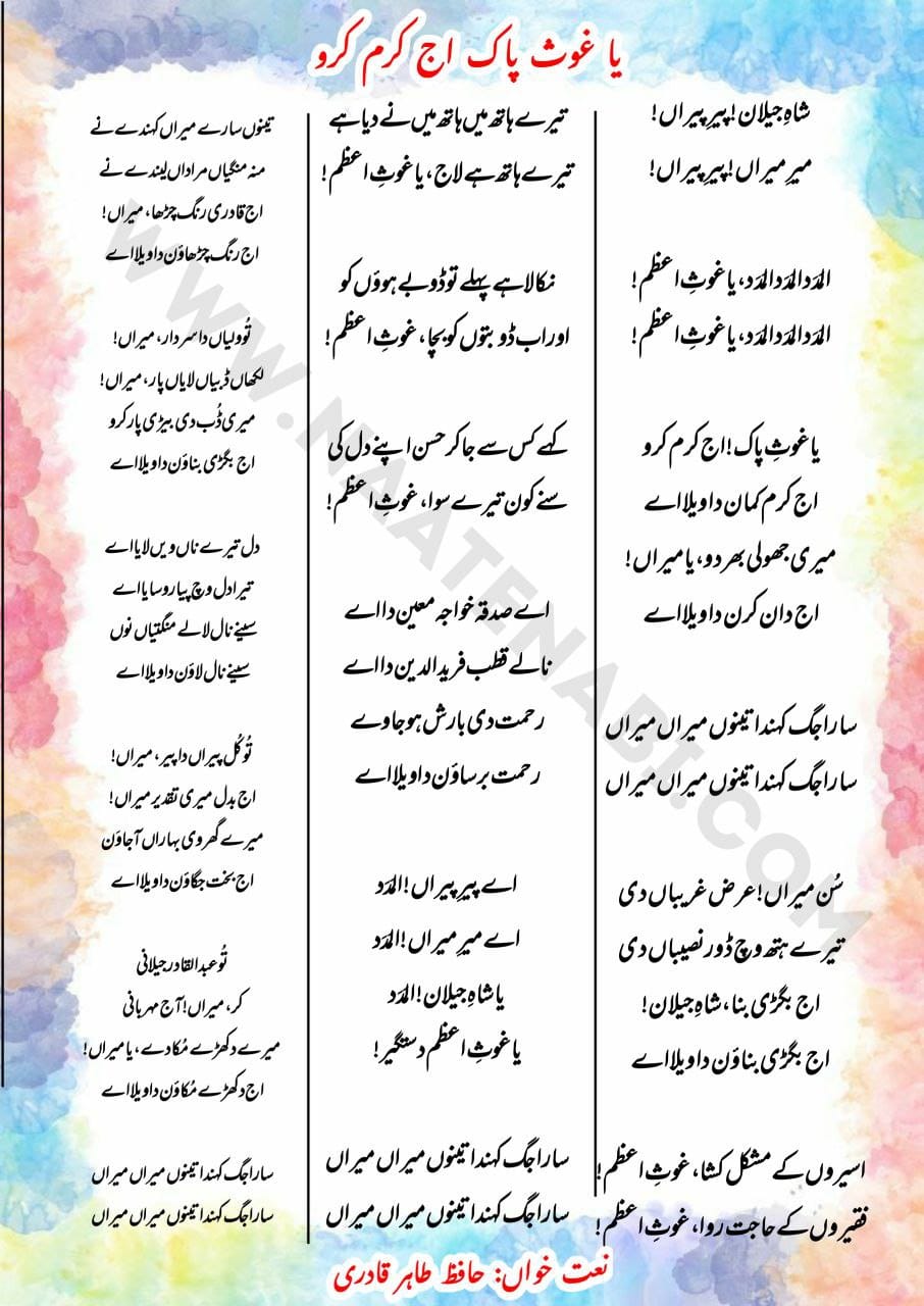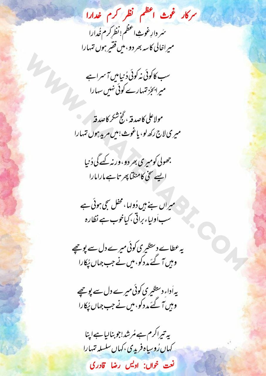 Meri subah Ghaus-e-Azam, meri shaam Ghaus-e-Azam-Manqabat Lyrics in Roman English