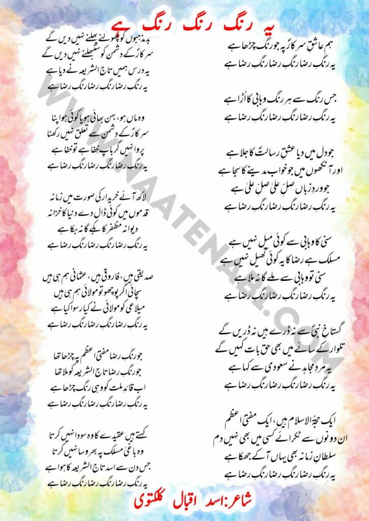 یہ رنگِ رضا رنگِ رضا رنگِ رضا ہے