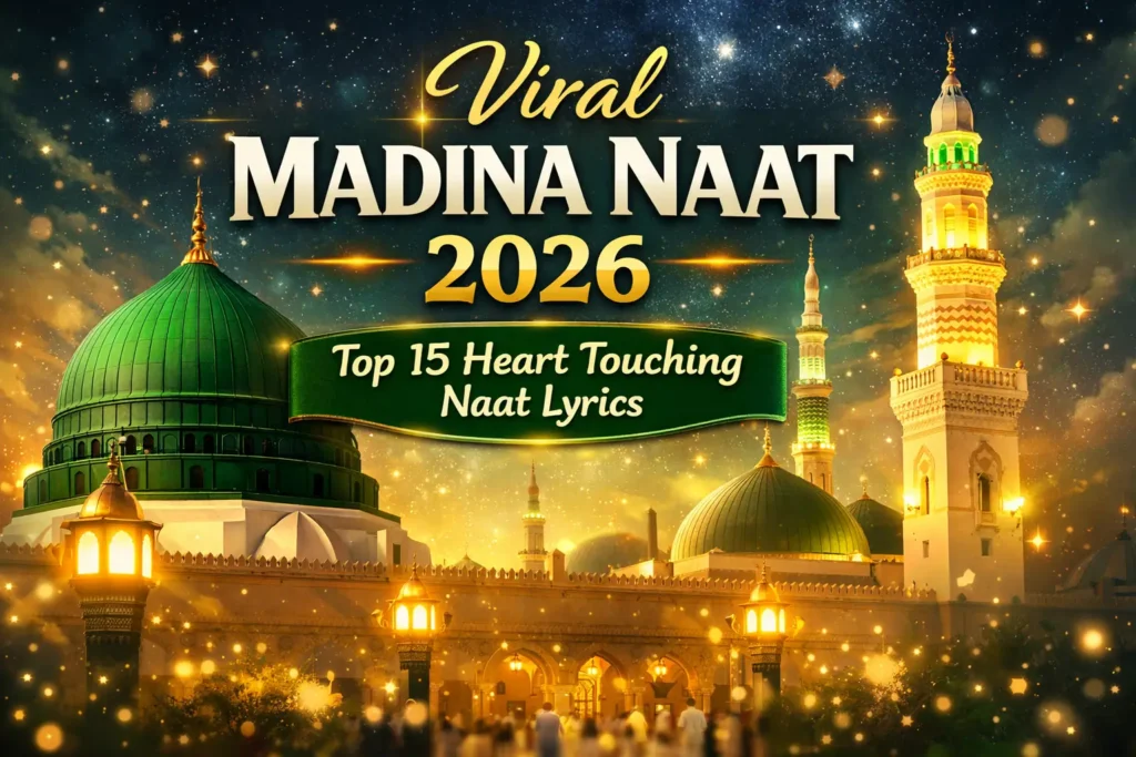 Viral Madina Naat 2026 is trending among Naat lovers who deeply cherish the beauty and blessings of the holy city of Madina. With increasing searches for emotional and heart-touching Madina Naat, many users are looking for complete and authentic lyrics in Roman English, Hindi, and Urdu.In this carefully selected collection, we have gathered the Top 15 Viral Madina Naat 2026 that are widely recited in Mehfil-e-Milad and Islamic gatherings. Each Naat listed below is available with full lyrics in three languages for easy reading and sharing.If you are searching for the most trending and soulful Madina Naat lyrics in 2026, this collection will help you find them all in one place.