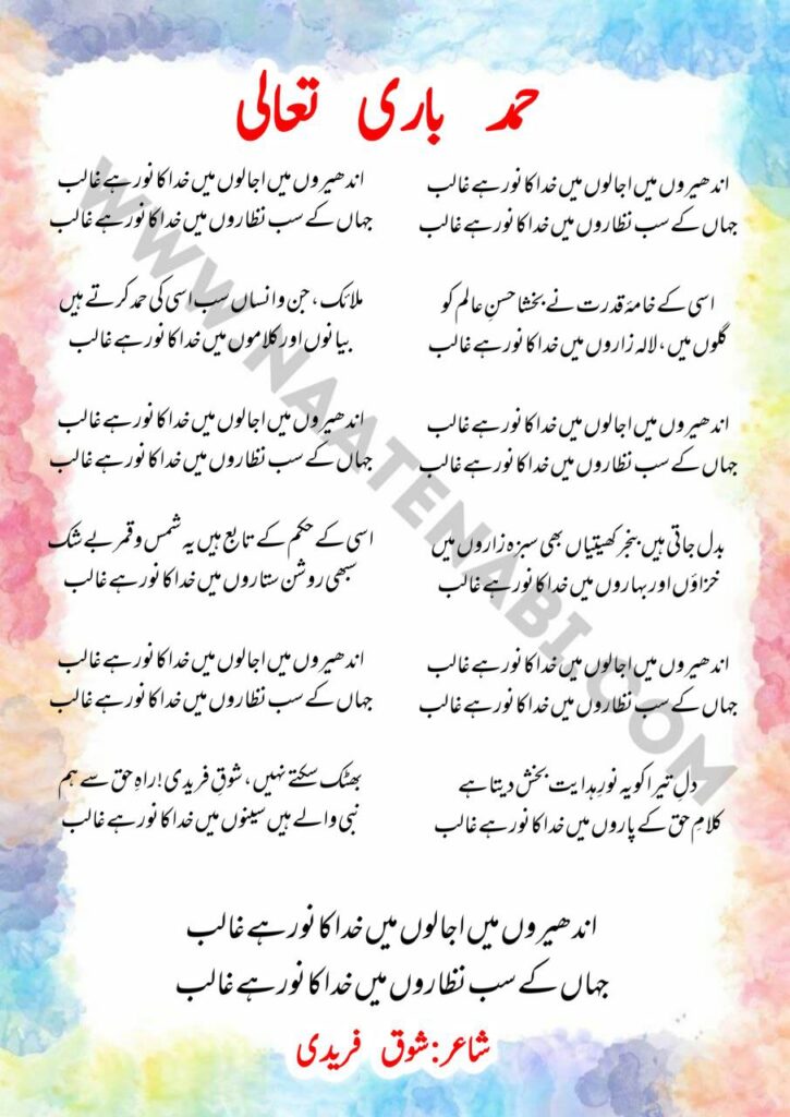 Zameeno Aasmanon Mein Khuda Ka Noor Hai Ghalib-Hamd Lyrics in Roman English